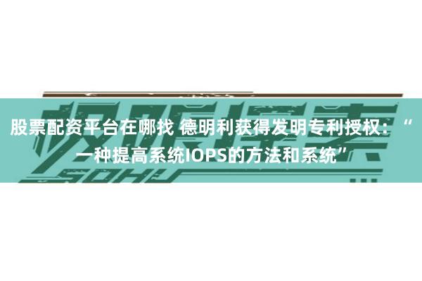 股票配资平台在哪找 德明利获得发明专利授权:“一种提高系统IOPS的方法和系统”