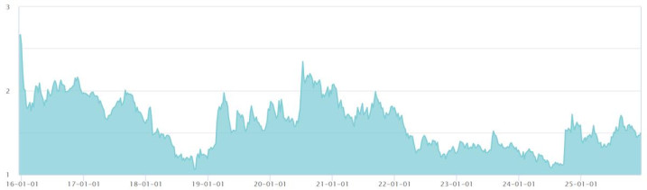 中证全指证券公司指数(399975.SZ)近十年PB走势